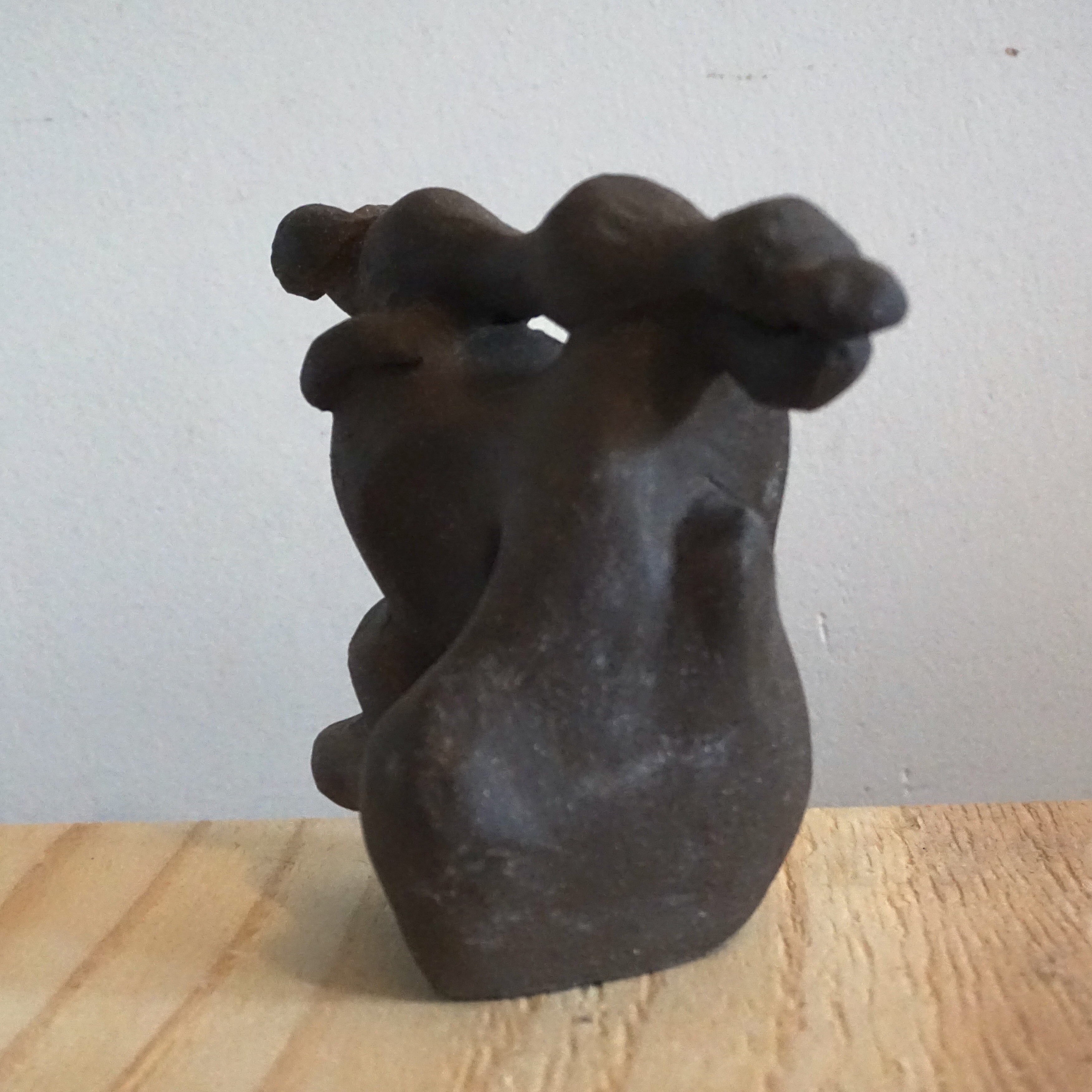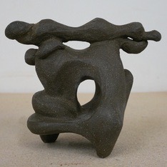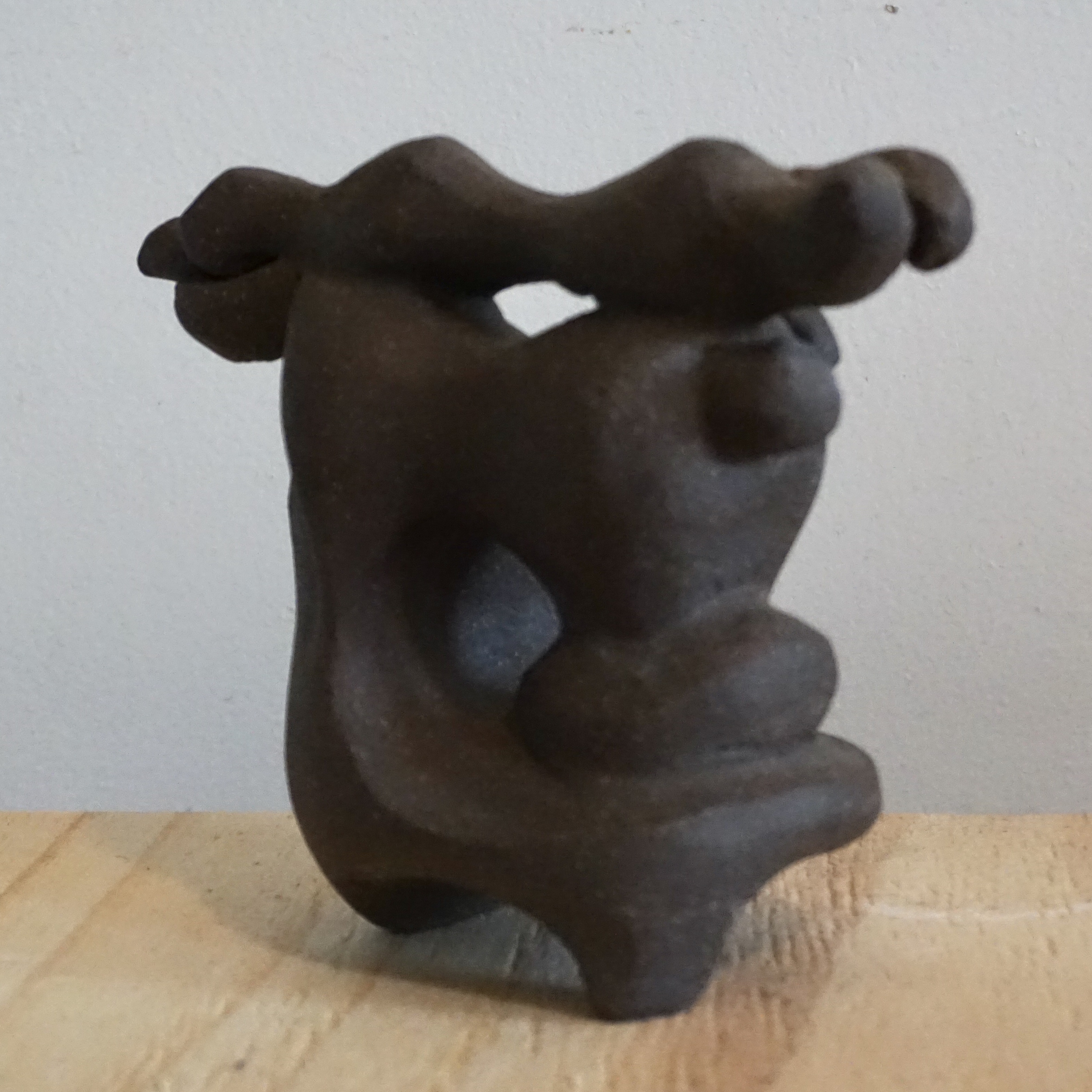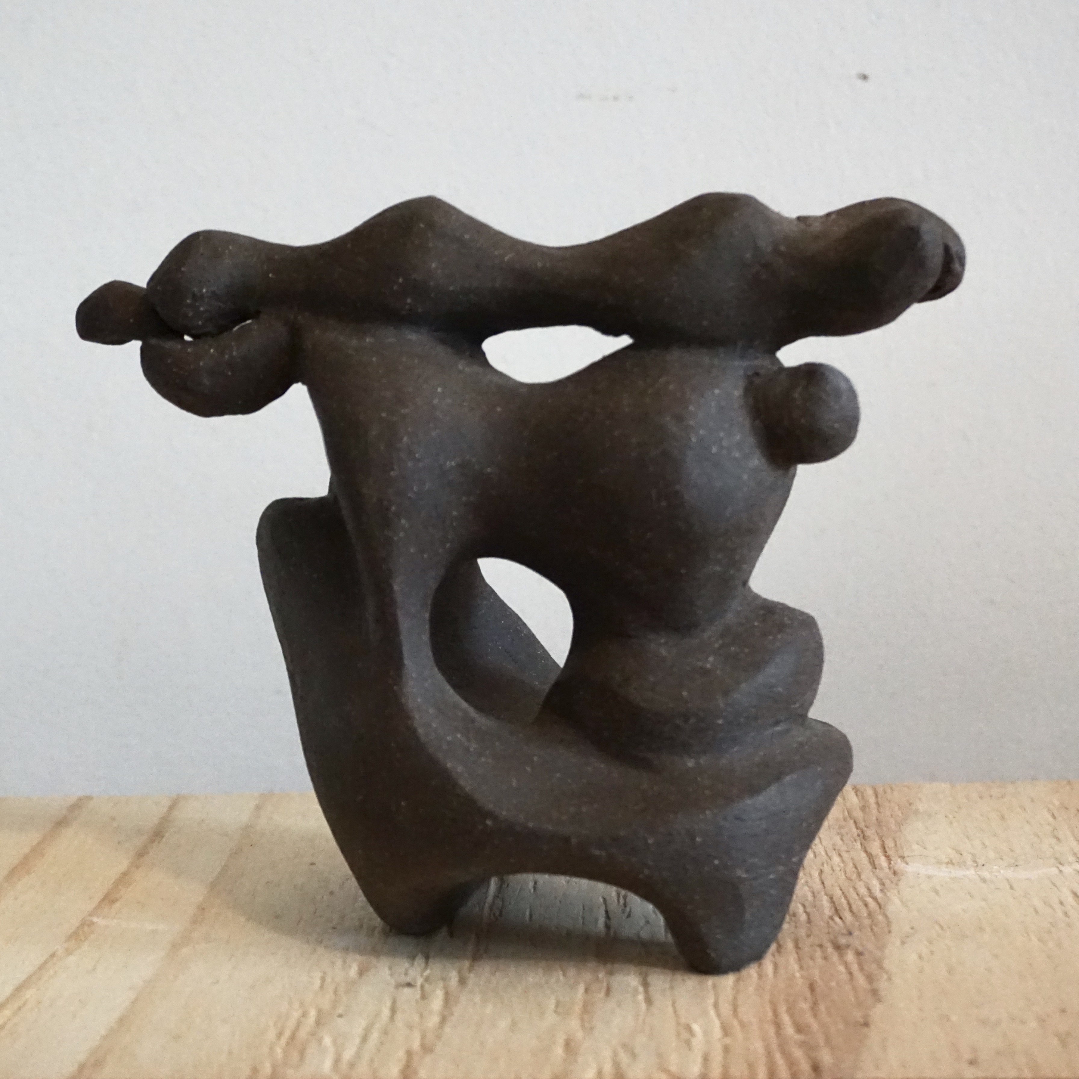 Crafted from dark brown stoneware clay and fired to cone 6. This work envisions the movements of a landscape and cloud.